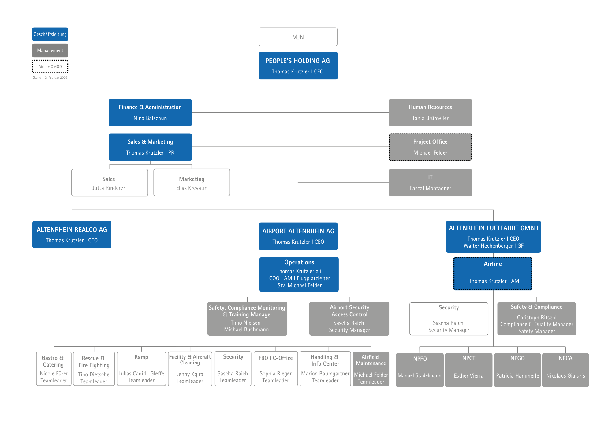 Die People's Air Group (auch People's Holding AG) umfasst die Altenrhein Realco AG (Immobilien), die Altenrhein Luftfahrt GmbH und die Airport Altenrhein AG. Stand ab 01.12.2025.